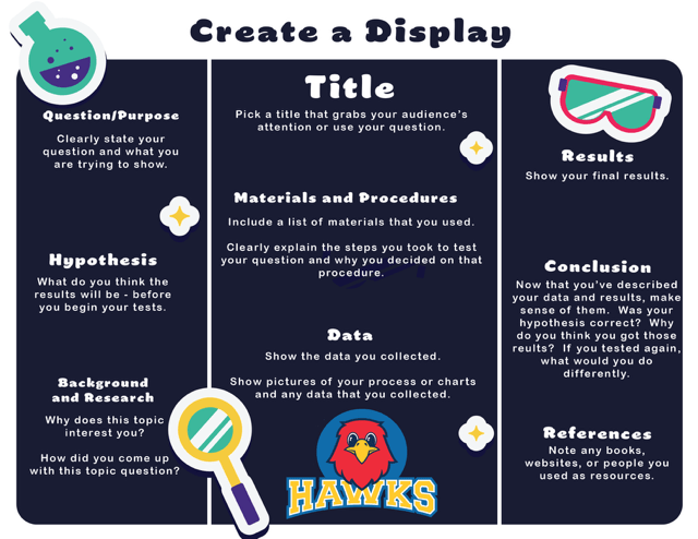 We will have a total of 7 awards with winners announced at our STEM night on Thursday, April 16th! Please see the graphics below that share information about creating your display as well as the categories your science project may fall under. This can be an individual project or a team project (maximum of 3 students).