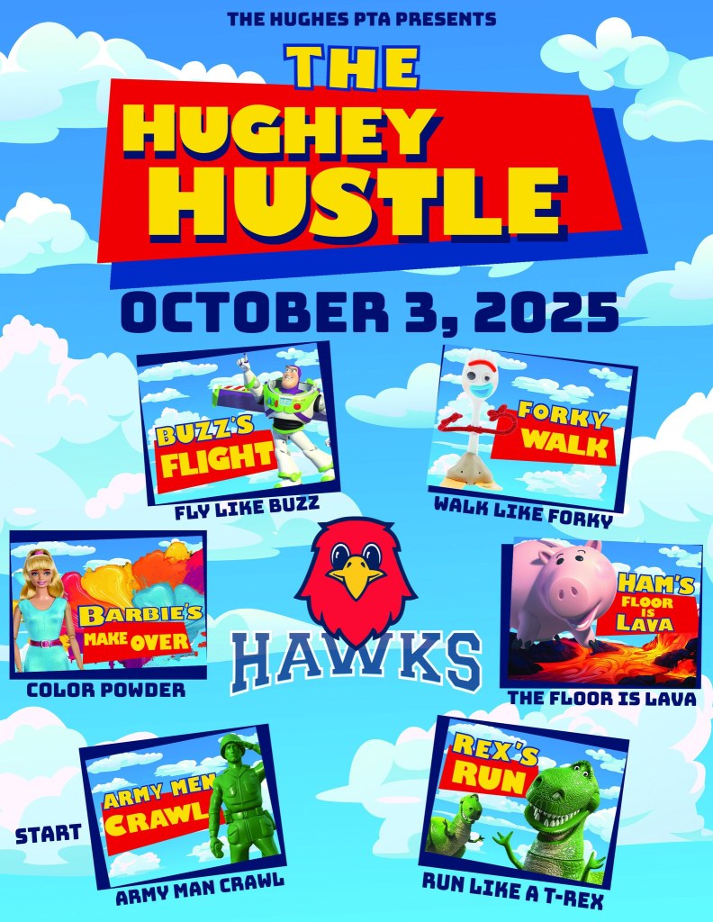 Hughes PTA is thrilled to announce our second ever Hughey Hustle fundraiser! This event is an exciting way for our students to engage in physical activity while promoting school spirit. We are so proud to share that 100% of all money donated will go straight to the Hughes PTA to support our school’s essential programs and activities —there are no middlemen!